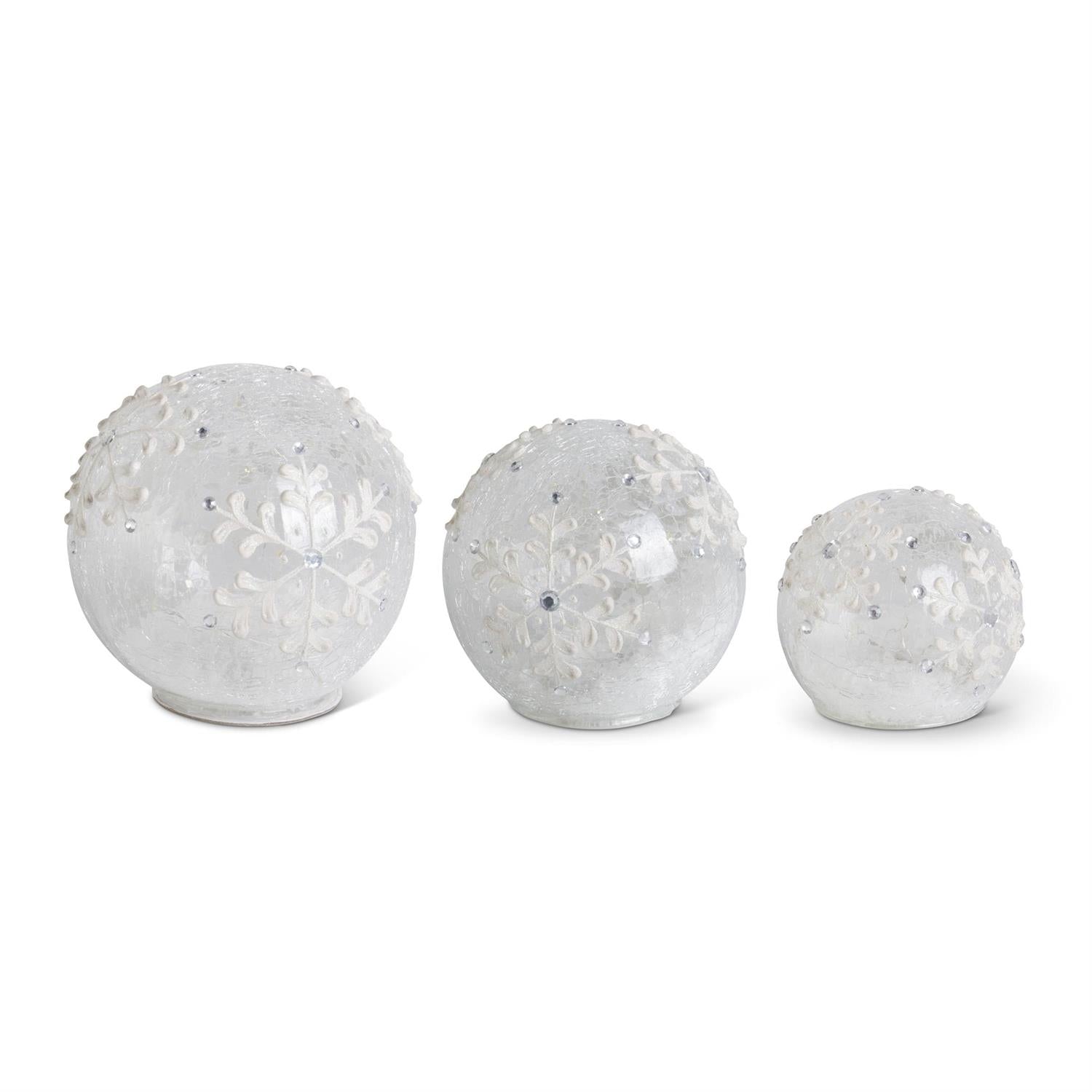 Enhance your holiday decor with these Snowflake Tabletop Snow Globes. Fluffy snowflakes inside and beautiful patterns on the outer shell add a warm wintery feel. These LED globes also come with timers, offering both beauty and convenience to your festive display.