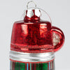 A glass ornament displaying a fun plaid thermos design with painted details and glitter accents. Our glass Thermos ornament is ready to hang for display via the included top loop. A fun camping-themed gift perfect for adding personality to a Christmas tree.