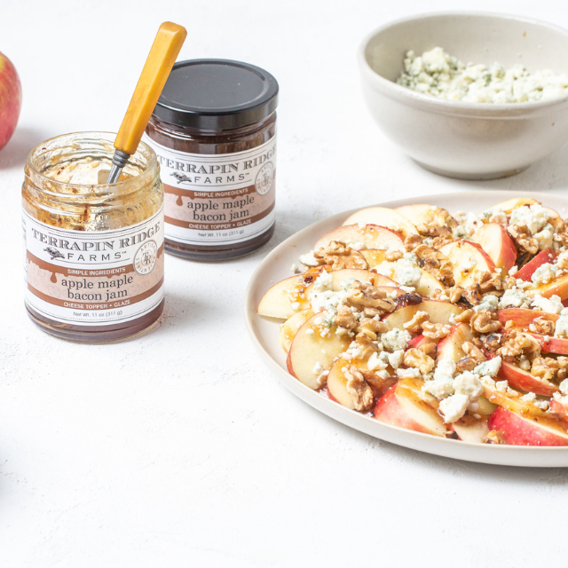 The blend of flavors including apples, cinnamon, maple, butter and bacon does not get better than this! Insanely delicious as a cheese topper, try on Brie! Incredible as a glaze for pork tenderloin, ham or a turkey breast. This size is perfect for Charcuterie and cheese boards. Gluten Free. Oil Free.