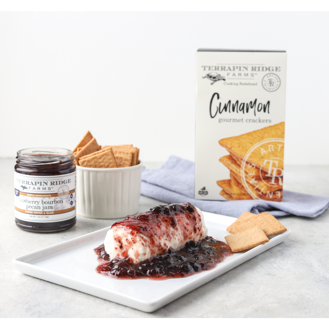 Baked with whole wheat flour, cane sugar, cinnamon and a touch of honey, our cinnamon crackers offer a crip texture and a subtly sweet, spiced flavor. They pair beautifully with cheeses and Terrapin Ridge farms jams. Try them with Blueberry Bourbon Pecan Jam and creamy Camembert, Apple Maple Bacon Jam with mild cheddar, or Hot Pepper Bacon Jam alongside mild Havarti or cream cheese. For a simpler bite, enjoy them with Raspberry Amaretto or Strawberry Fig Jam.